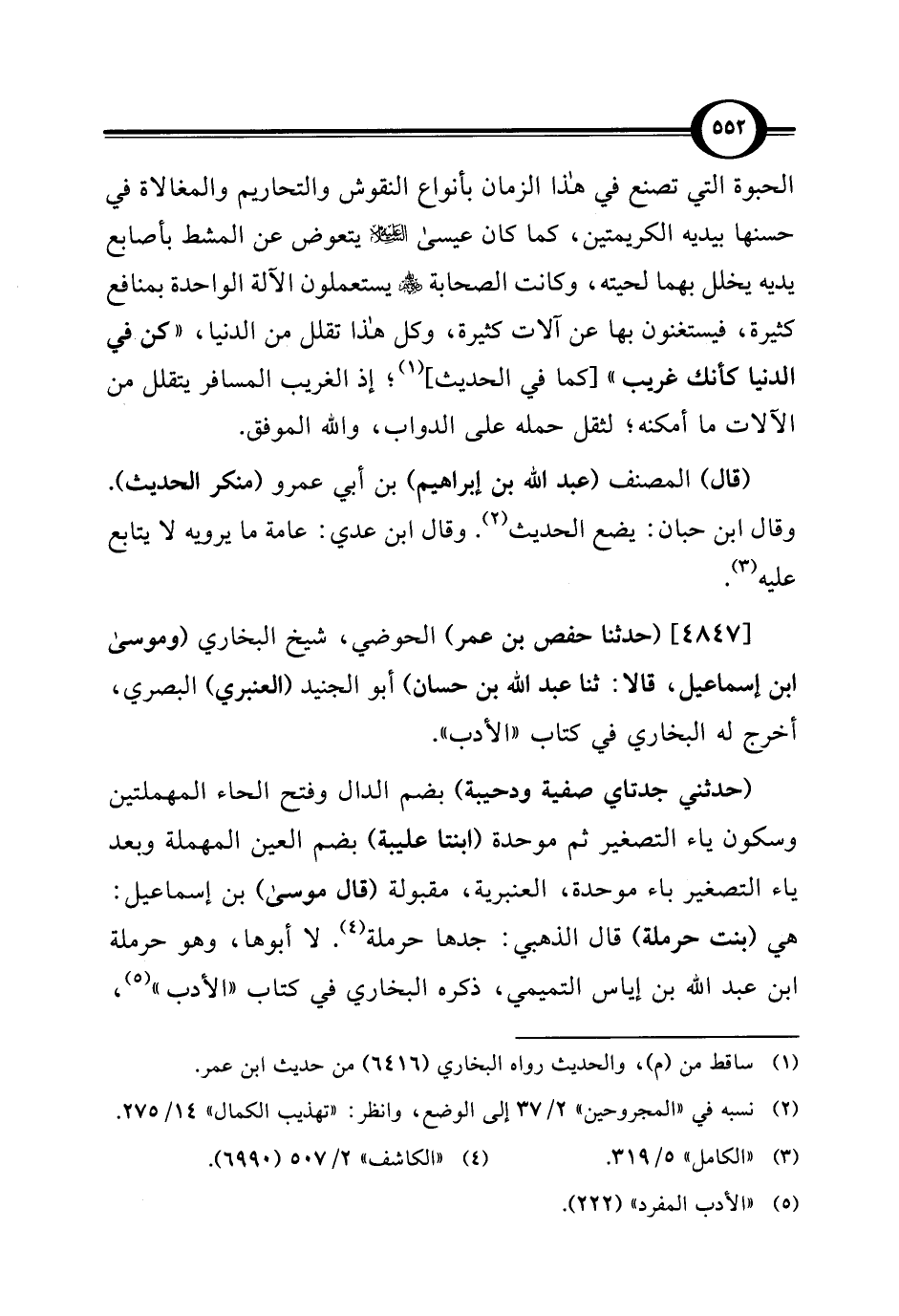 [4847] (حدثنا حفص بن عمر) الحوضي، شيخ البخاري (وموسى ابن إسماعيل، قالا: ثنا عبد اللَّه بن حسان) أبو الجنيد (العنبري) البصري، أخرج له البخاري في كتاب "الأدب".