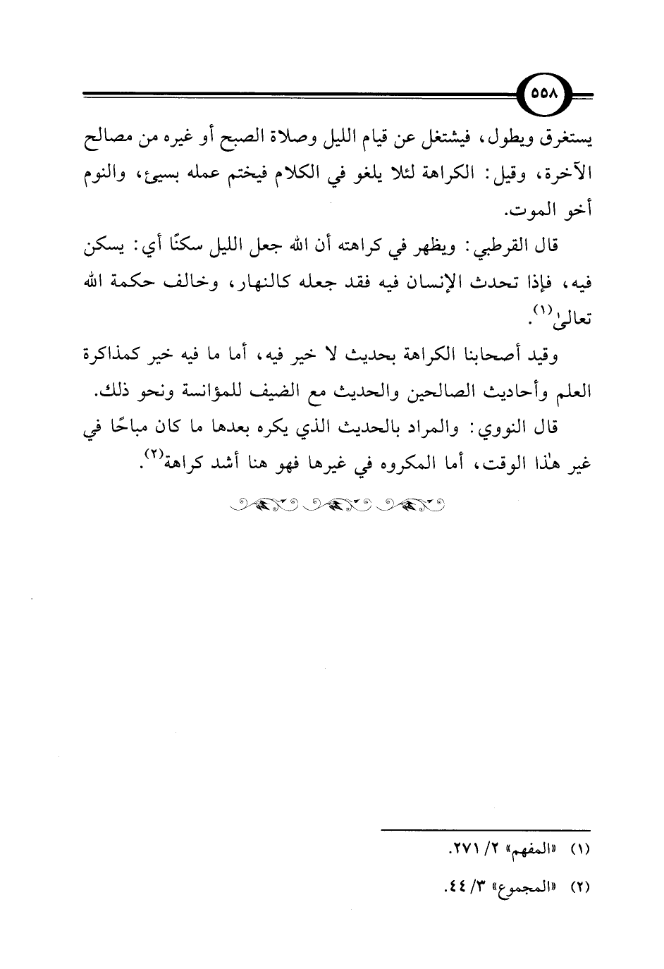 قال النووي: والمراد بالحديث الذي يكره بعدها ما كان مباحًا فرب غير هذا الوقت، أما المكروه في غيرها فهو هنا أشد كراهة (¬2).