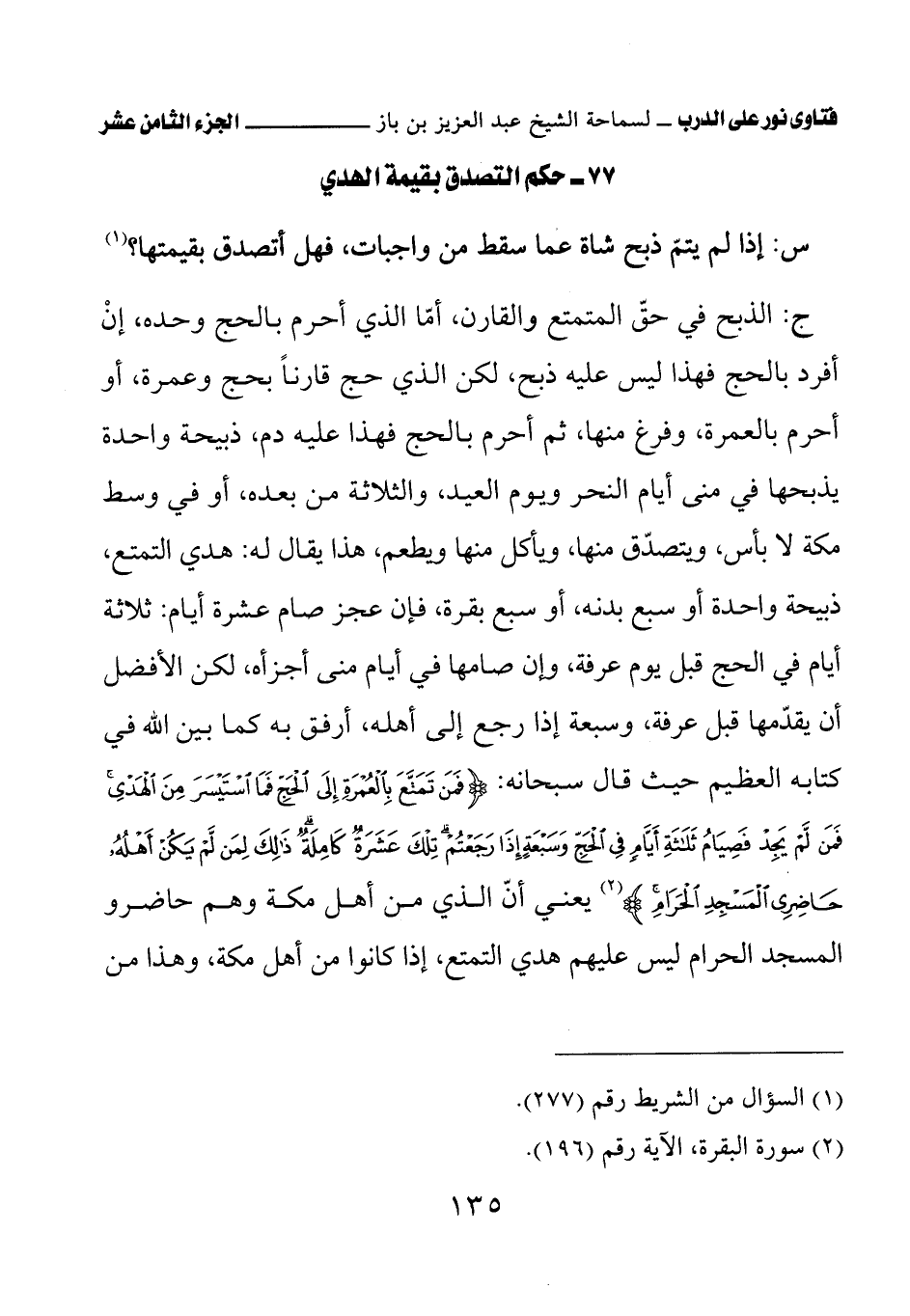 77 - حكم التصدق بقيمة الهدي