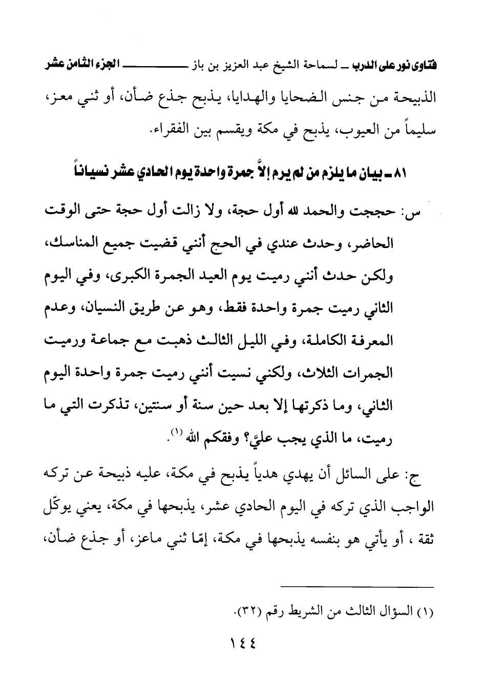 كتاب فتاوى نور على الدرب لابن باز بعناية الشويعر (اسم الجزء: 18)