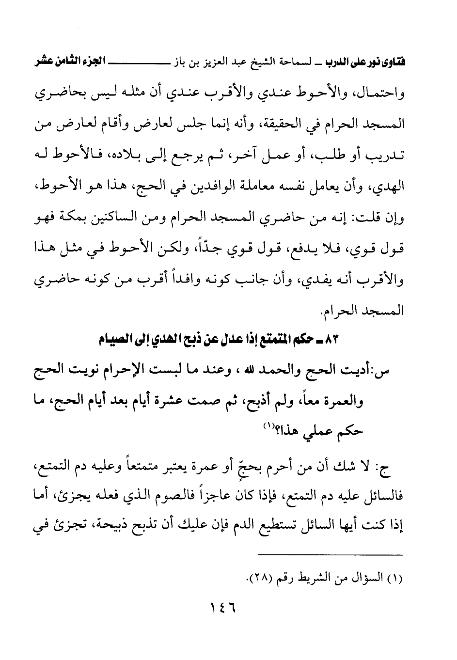 كتاب فتاوى نور على الدرب لابن باز بعناية الشويعر (اسم الجزء: 18)
