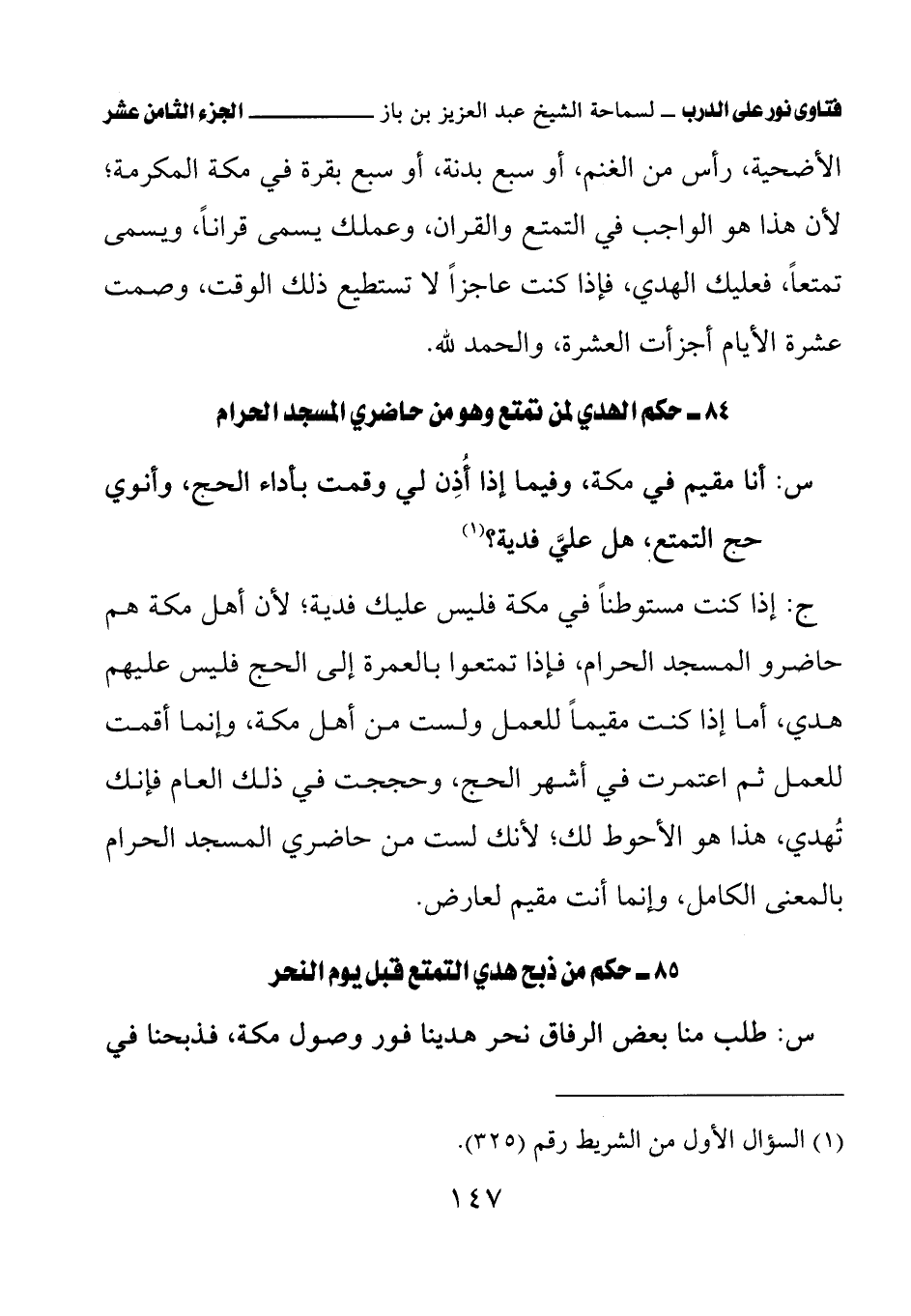 84 - حكم الهدي لمن تمتع وهو من حاضري المسجد الحرام