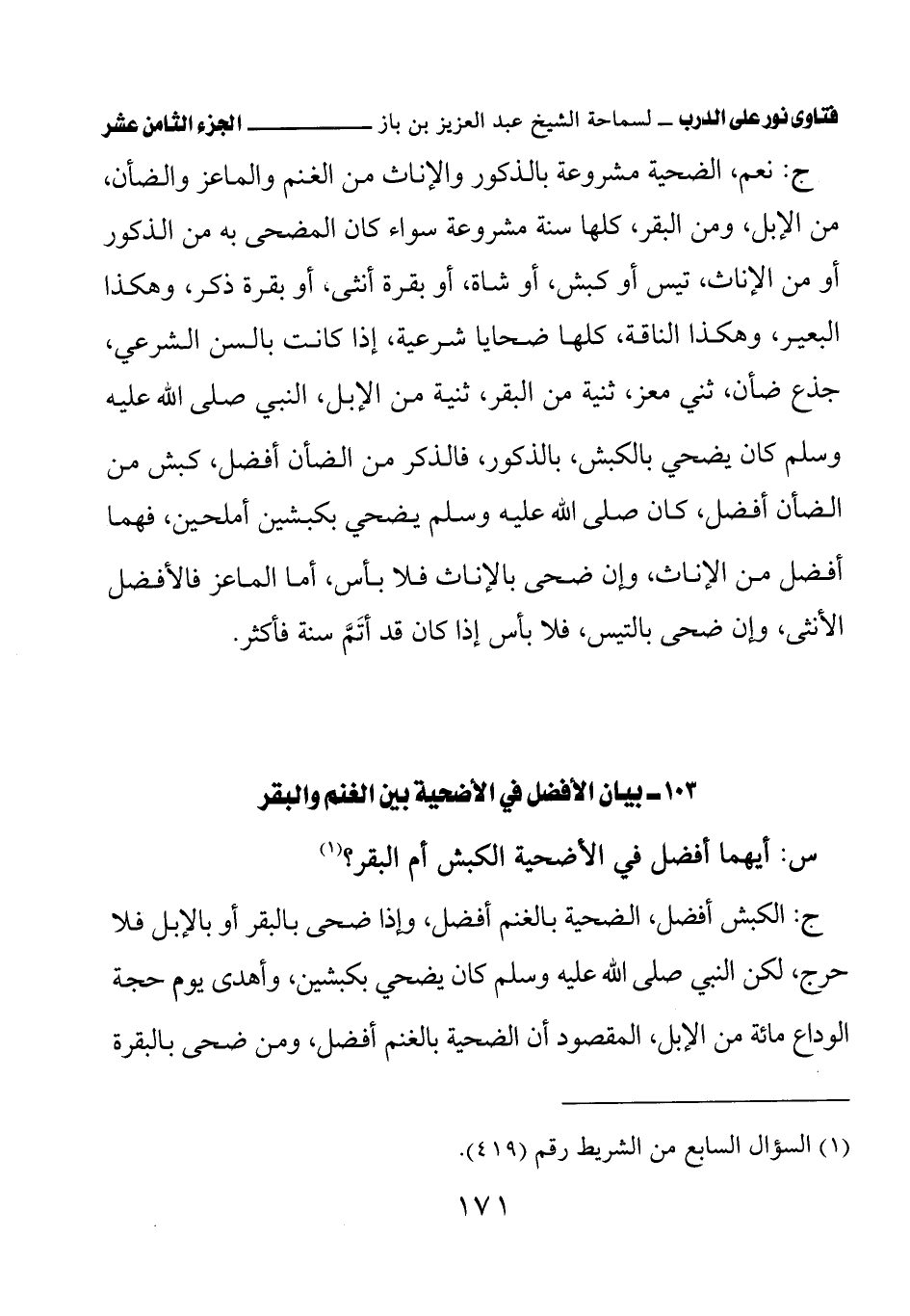 (¬1) السؤال السابع من الشريط رقم (419).