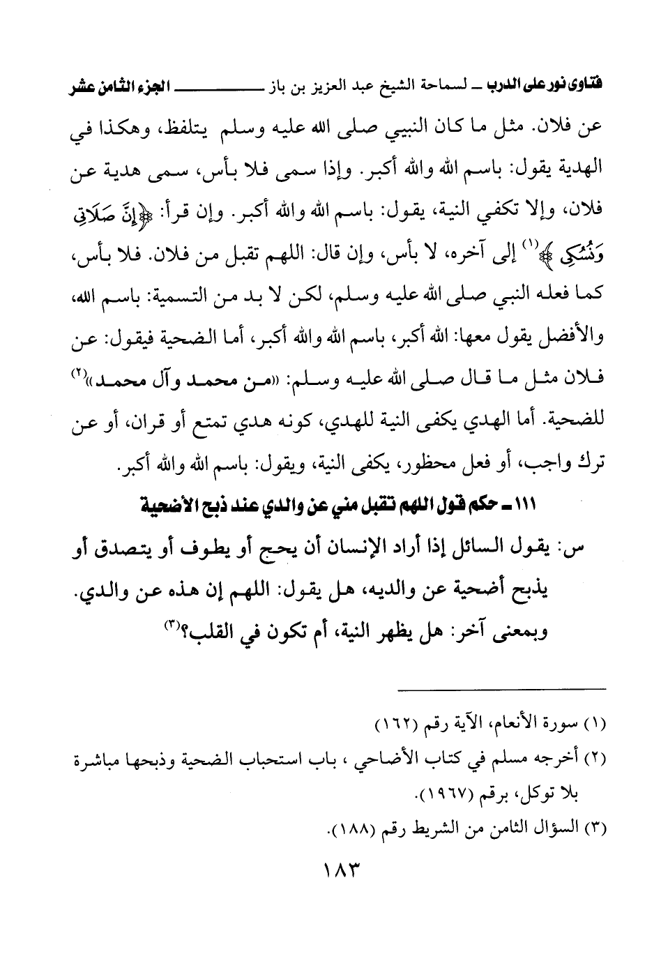 كتاب فتاوى نور على الدرب لابن باز بعناية الشويعر (اسم الجزء: 18)
