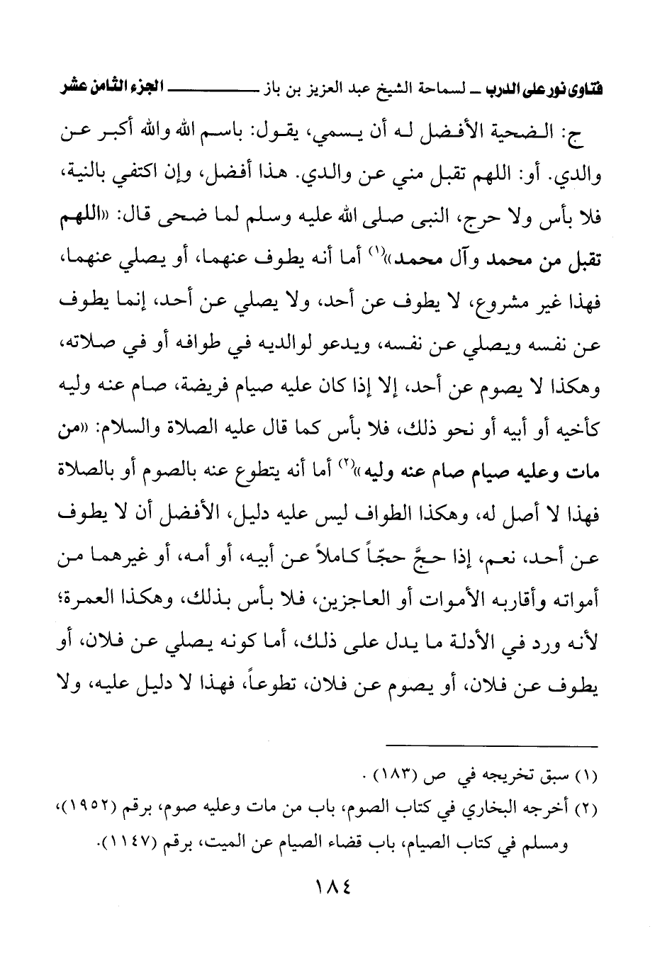 كتاب فتاوى نور على الدرب لابن باز بعناية الشويعر (اسم الجزء: 18)
