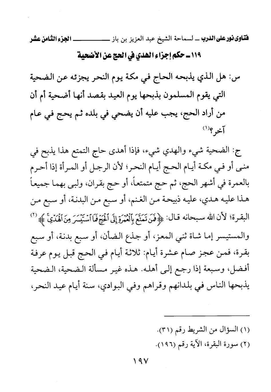119 - حكم إجزاء الهدي في الحج عن الأضحية