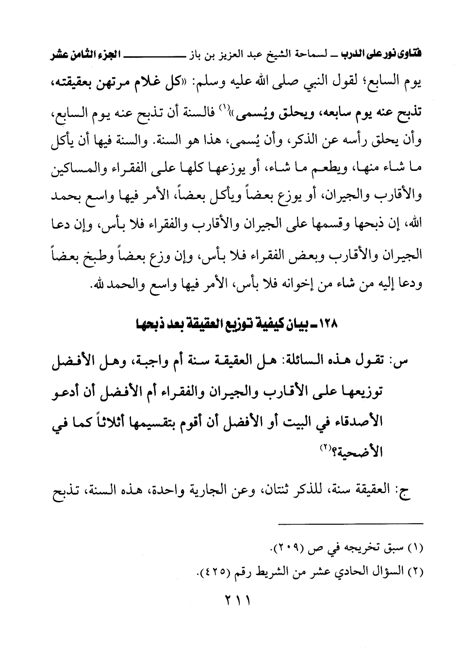 128 - بيان كيفية توزيع العقيقة بعد ذبحها