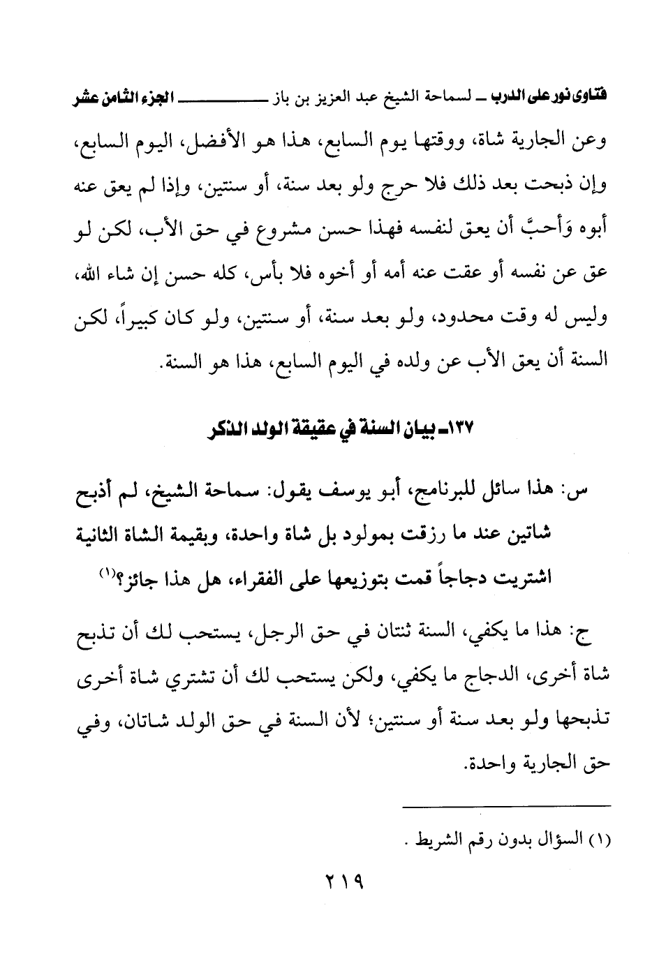 137 - بيان السنة في عقيقة الولد الذكر
