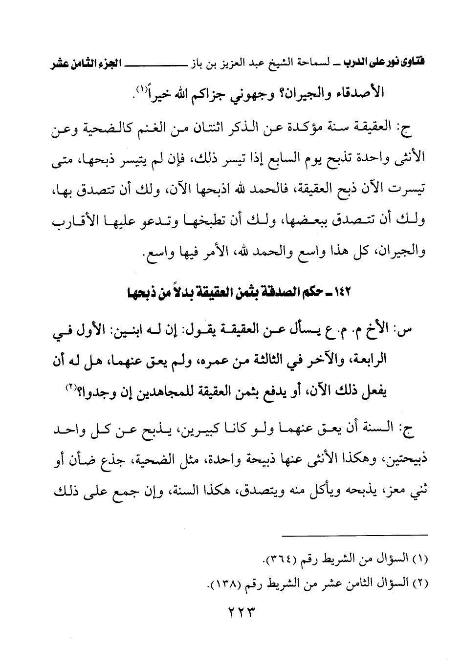 142 - حكم الصدقة بثمن العقيقة بدلاً من ذبحها