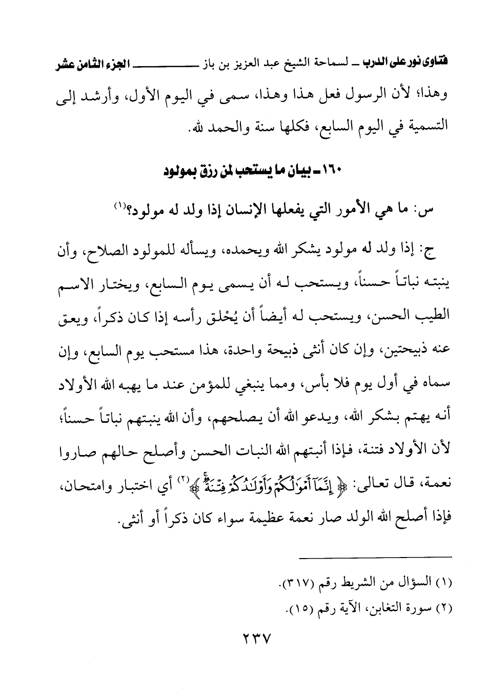 160 - بيان ما يستحب لمن رزق بمولود