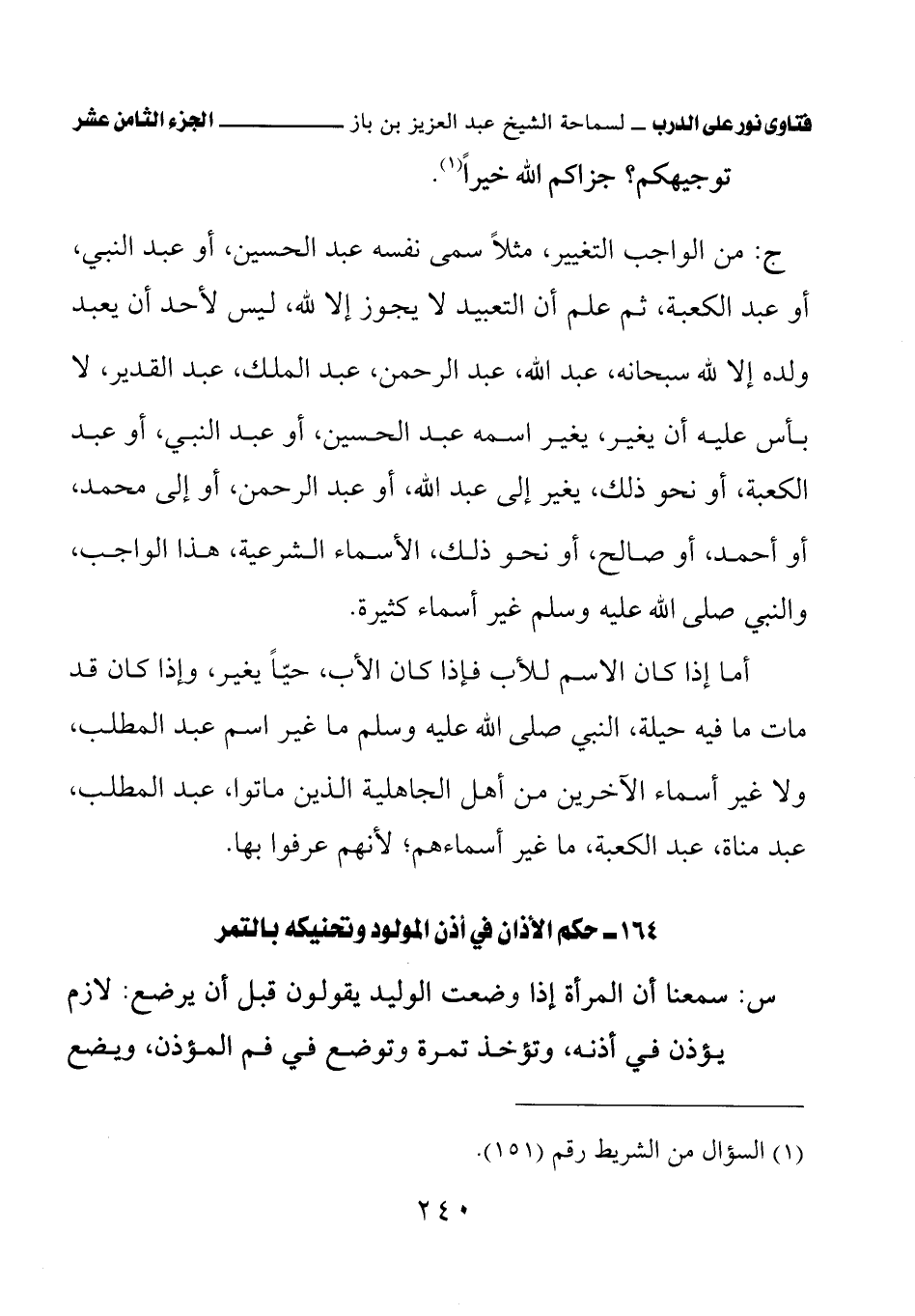 164 - حكم الأذان في أذن المولود وتحنيكه بالتمر