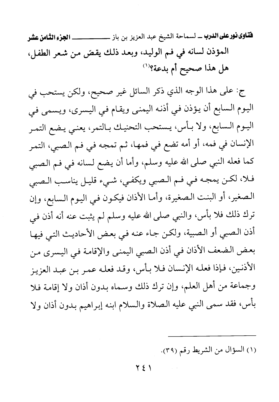 كتاب فتاوى نور على الدرب لابن باز بعناية الشويعر (اسم الجزء: 18)
