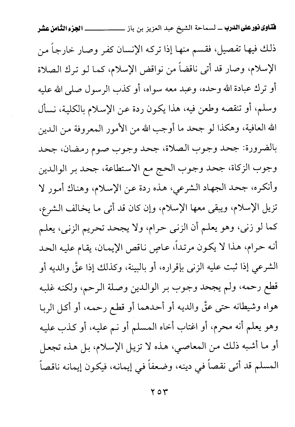 كتاب فتاوى نور على الدرب لابن باز بعناية الشويعر (اسم الجزء: 18)