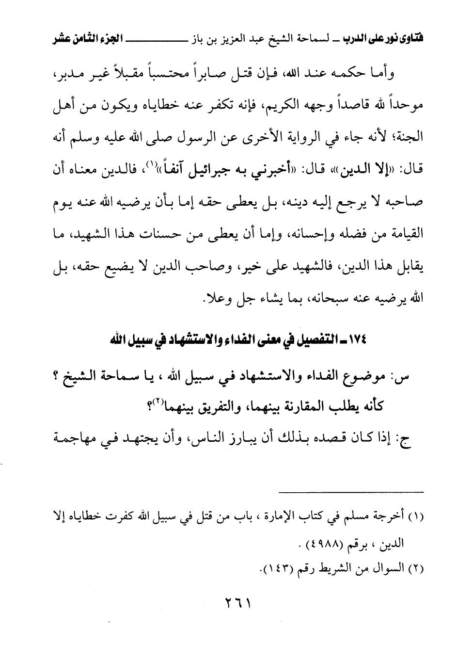 174 - التفصيل في معنى الفداء والاستشهاد في سبيل الله