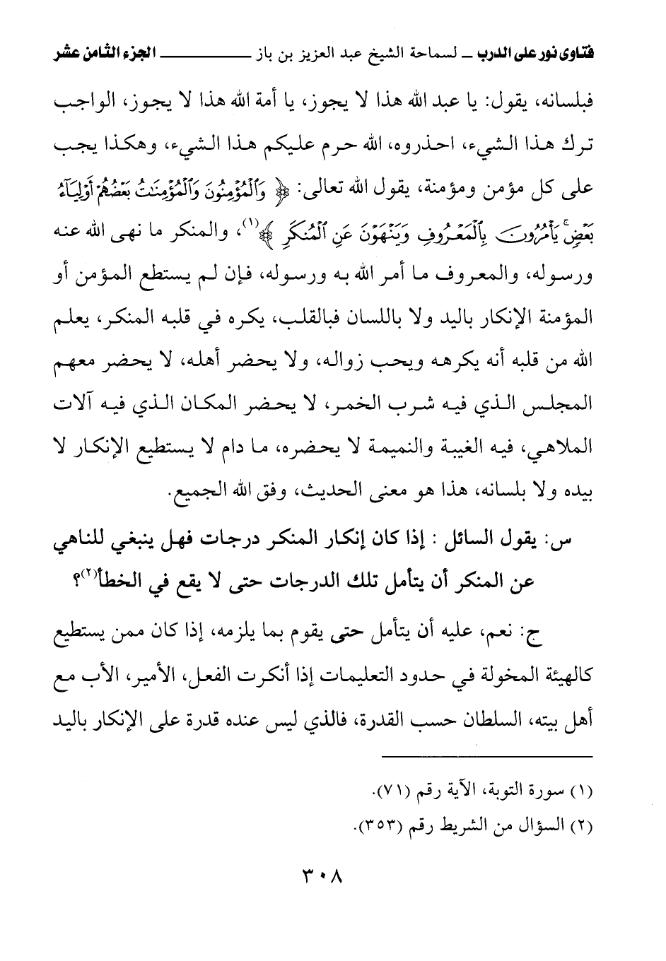 كتاب فتاوى نور على الدرب لابن باز بعناية الشويعر (اسم الجزء: 18)