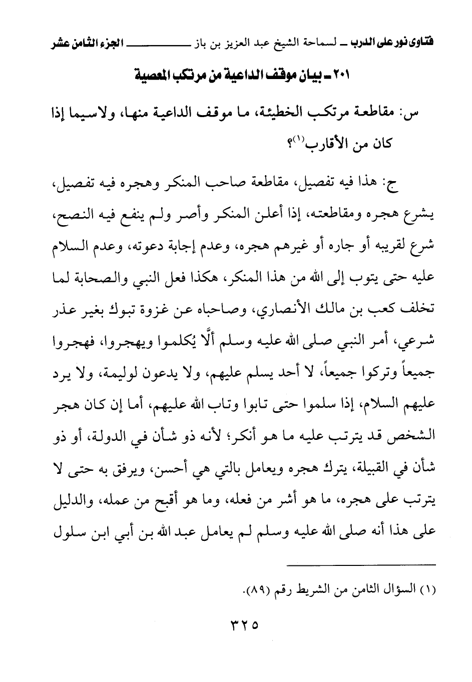 س: مقاطعة مرتكب الخطيئة، ما موقف الداعية منها، ولا سيما إذا كان من الأقارب؟ (¬1)