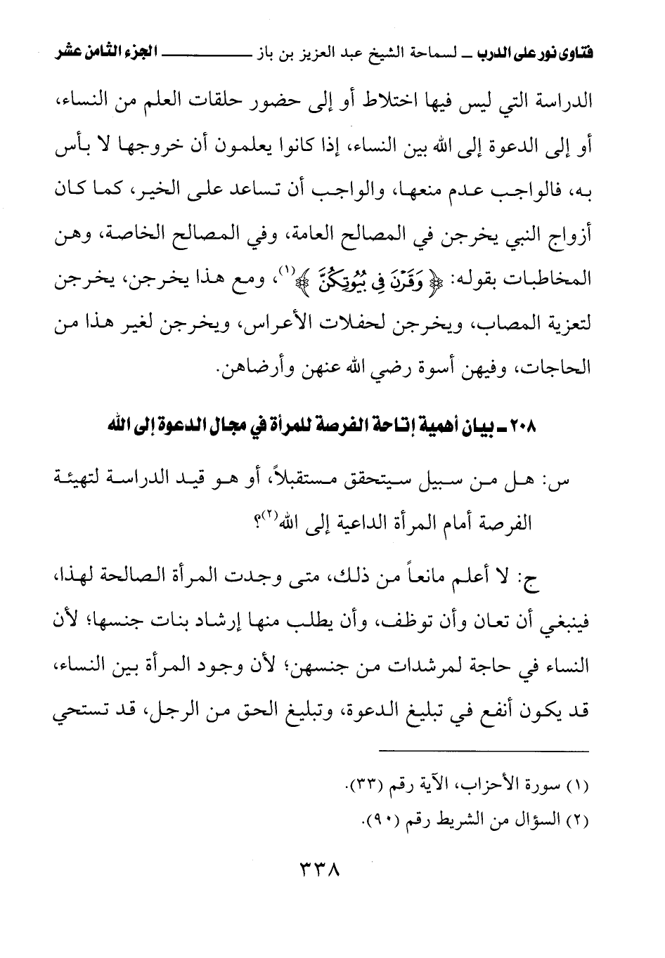 208 - بيان أهمية إتاحة الفرصة للمرأة في مجال الدعوة إلى الله