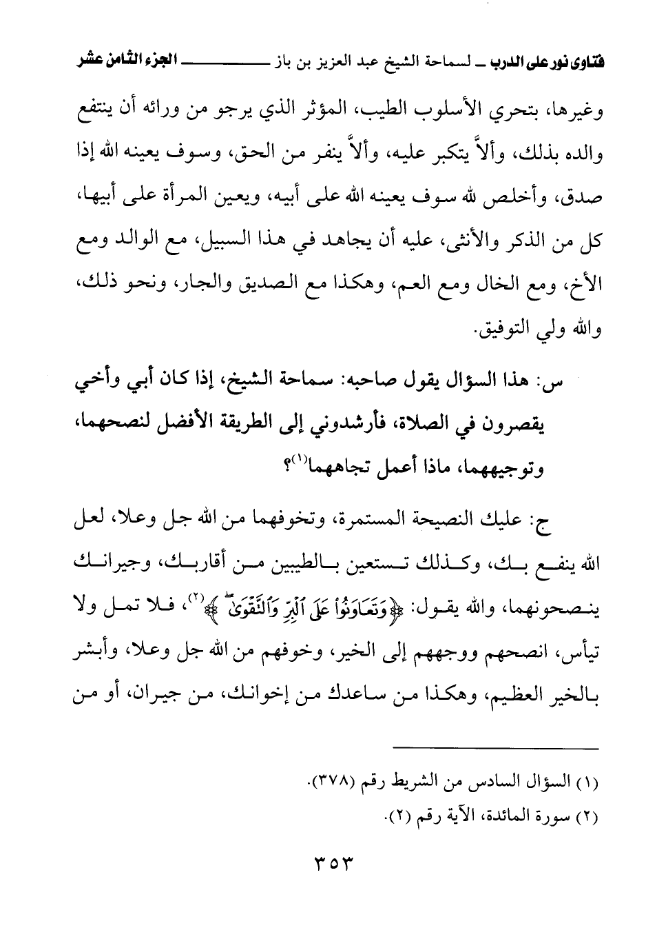 كتاب فتاوى نور على الدرب لابن باز بعناية الشويعر (اسم الجزء: 18)