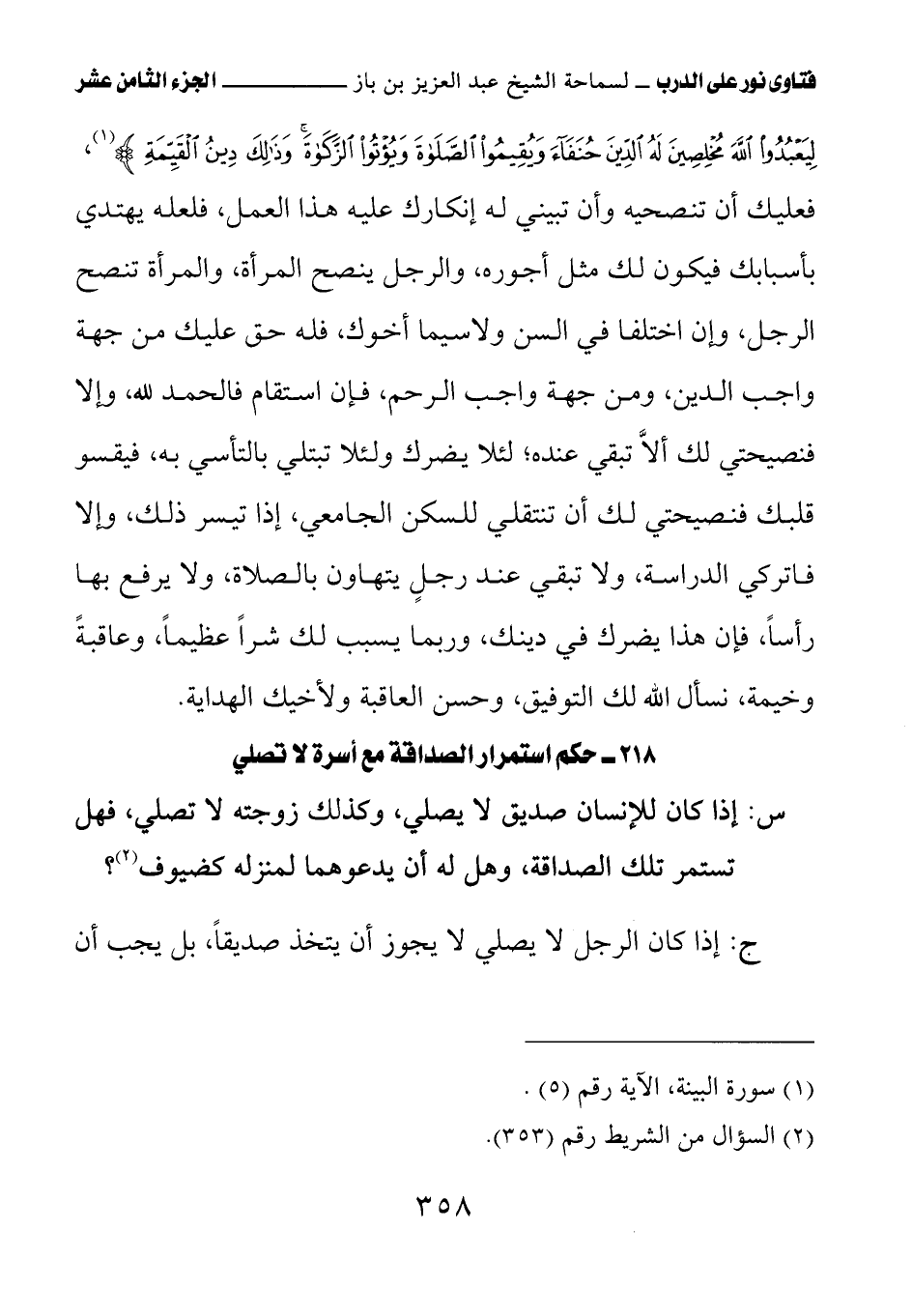 كتاب فتاوى نور على الدرب لابن باز بعناية الشويعر (اسم الجزء: 18)