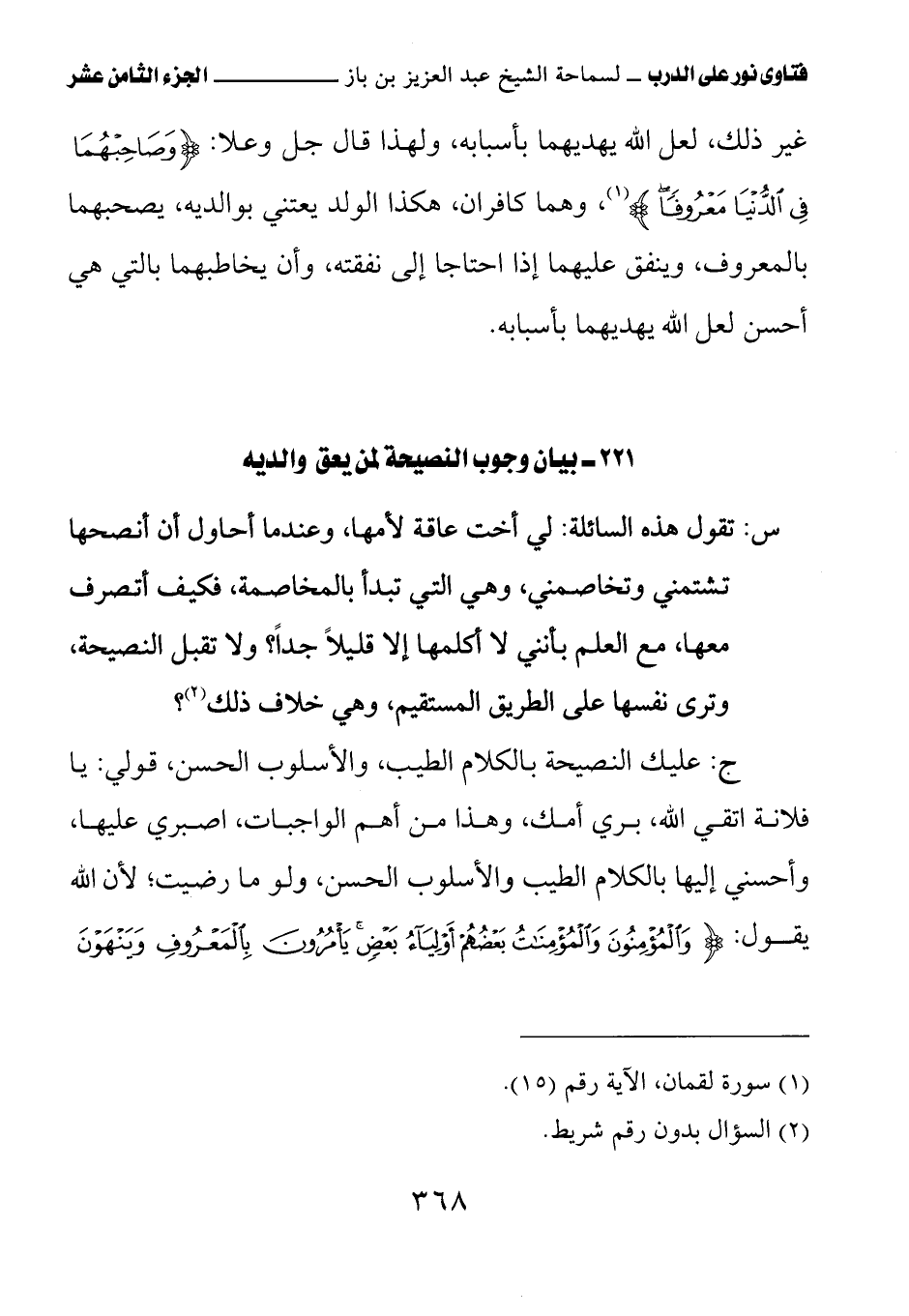 كتاب فتاوى نور على الدرب لابن باز بعناية الشويعر (اسم الجزء: 18)