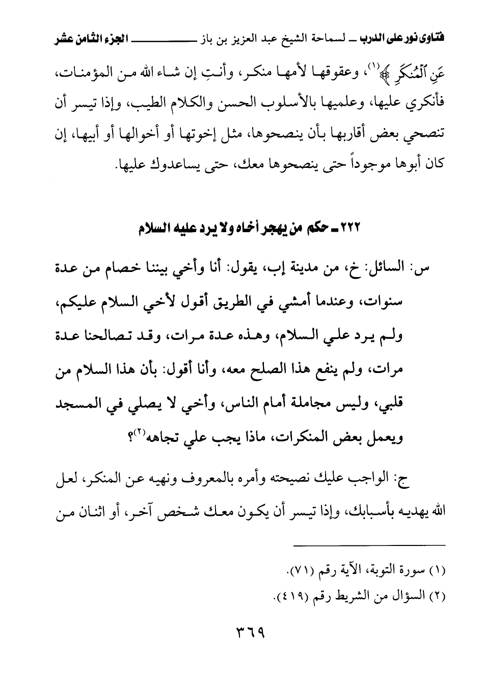 كتاب فتاوى نور على الدرب لابن باز بعناية الشويعر (اسم الجزء: 18)