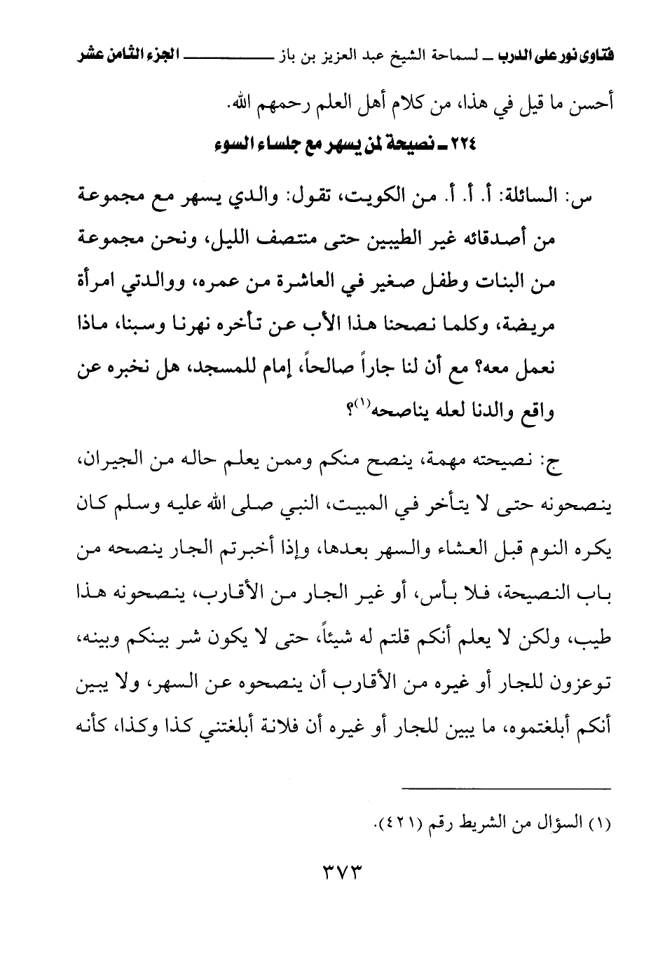 224 - نصيحة لمن يسهر مع جلساء السوء