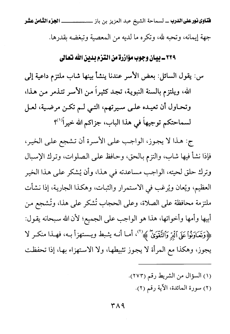 229 - بيان وجوب مؤازرة من التزم بدين الله تعالى