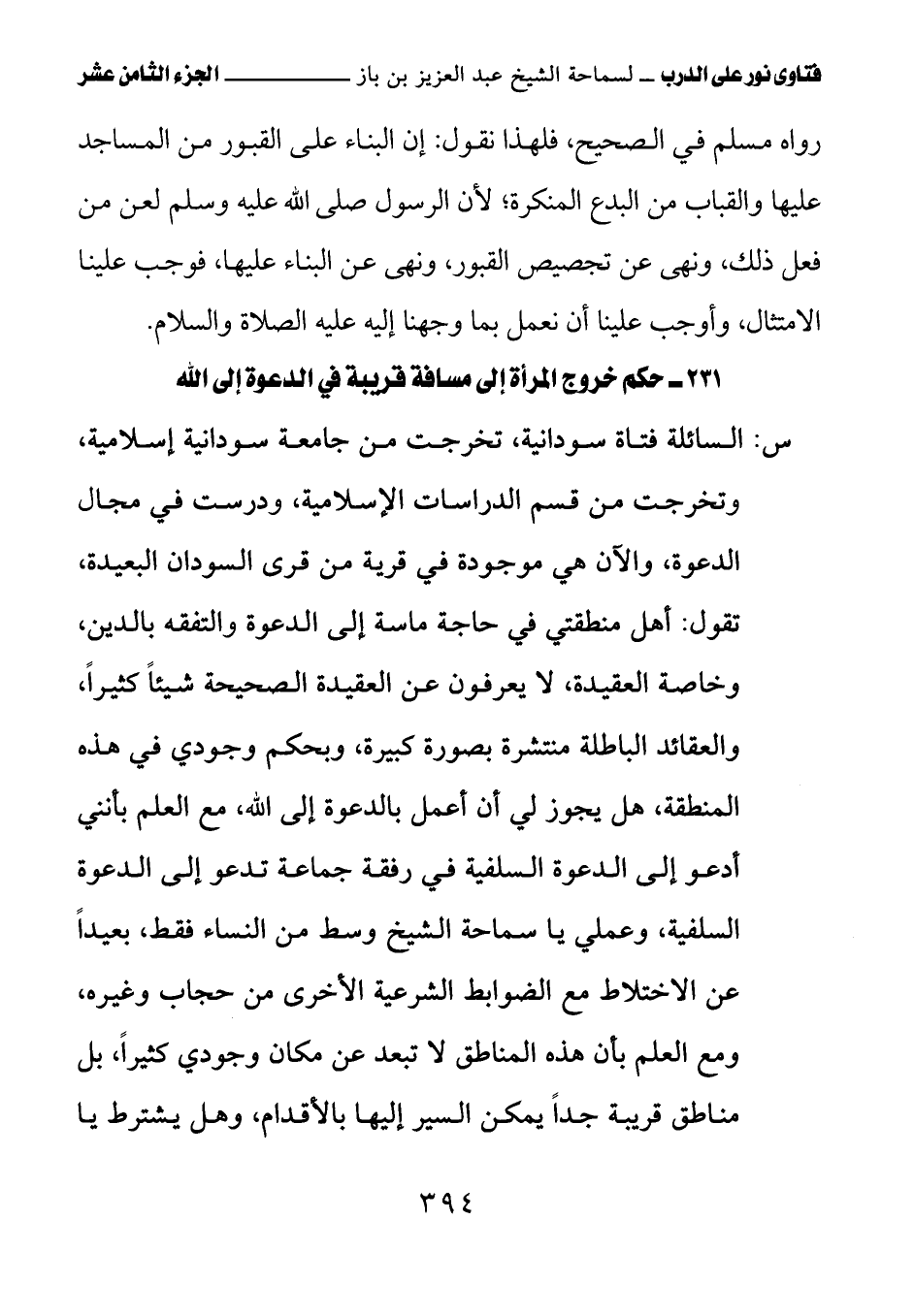 كتاب فتاوى نور على الدرب لابن باز بعناية الشويعر (اسم الجزء: 18)