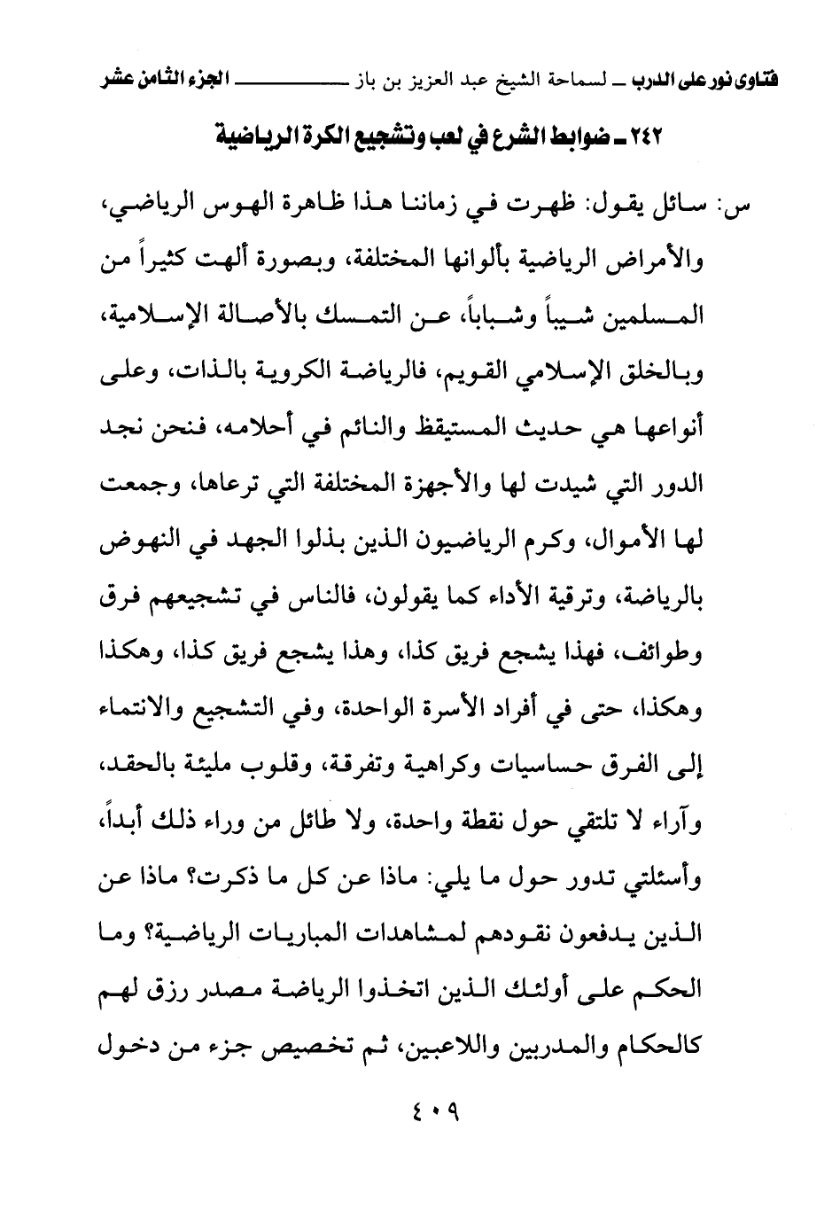 242 - ضوابط الشرع في لعب وتشجيع الكرة الرياضية