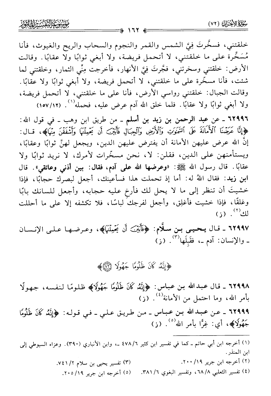 ٦٢٩٩٨ - قال عبد الله بن عباس: {إنَّهُ كانَ ظَلُومًا جَهُولًا} ظلومًا لنفسه، جهولًا بأمر الله، وما احتمل من الأمانة (¬٤). (ز)