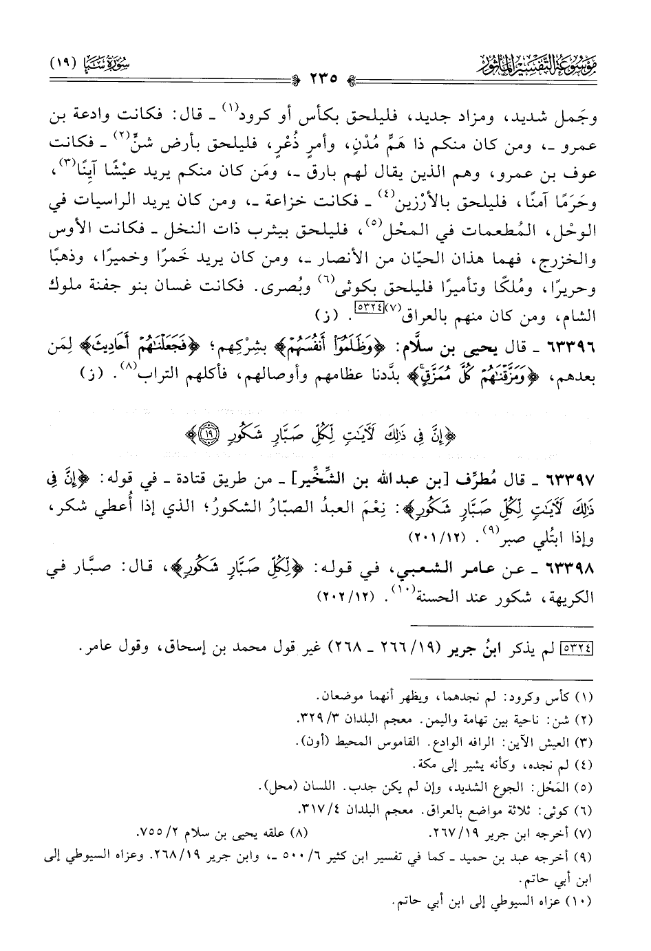 ٦٣٣٩٨ - عن عامر الشعبي، في قوله: {لِكُلِّ صَبّارٍ شَكُورٍ}، قال: صبّار في الكريهة، شكور عند الحسنة (¬١٠). (١٢/ ٢٠٢)