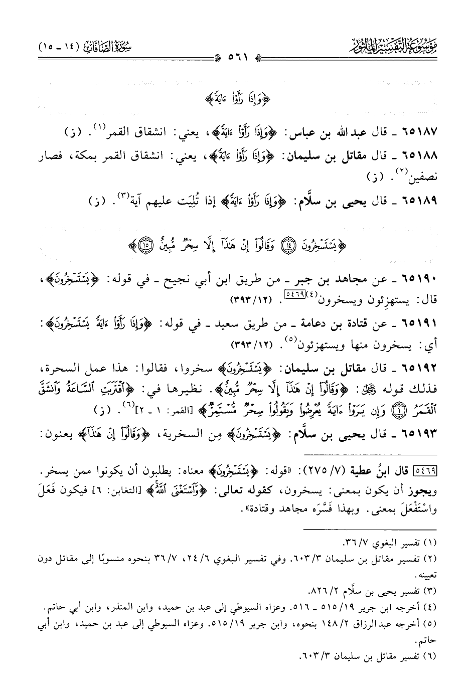 ٦٥١٨٧ - قال عبد الله بن عباس: {وإذا رَأَوْا آيَةً}، يعني: انشقاق القمر (¬١). (ز)