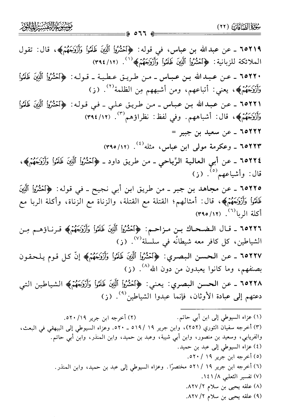 ٦٥٢٢١ - عن عبد الله بن عباس -من طريق علي- في قوله: {احْشُرُوا الَّذِينَ ظَلَمُوا وأَزْواجَهُمْ}، قال: أشباههم. وفي لفظ: نظراؤهم (¬٣). (١٢/ ٣٩٤)