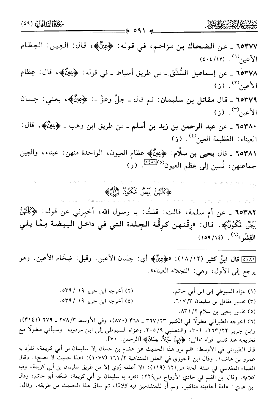 ٦٥٣٧٨ - عن إسماعيل السُّدِّيّ -من طريق أسباط- في قوله: {عِينٌ}، قال: عِظام الأعين (¬٢). (ز)