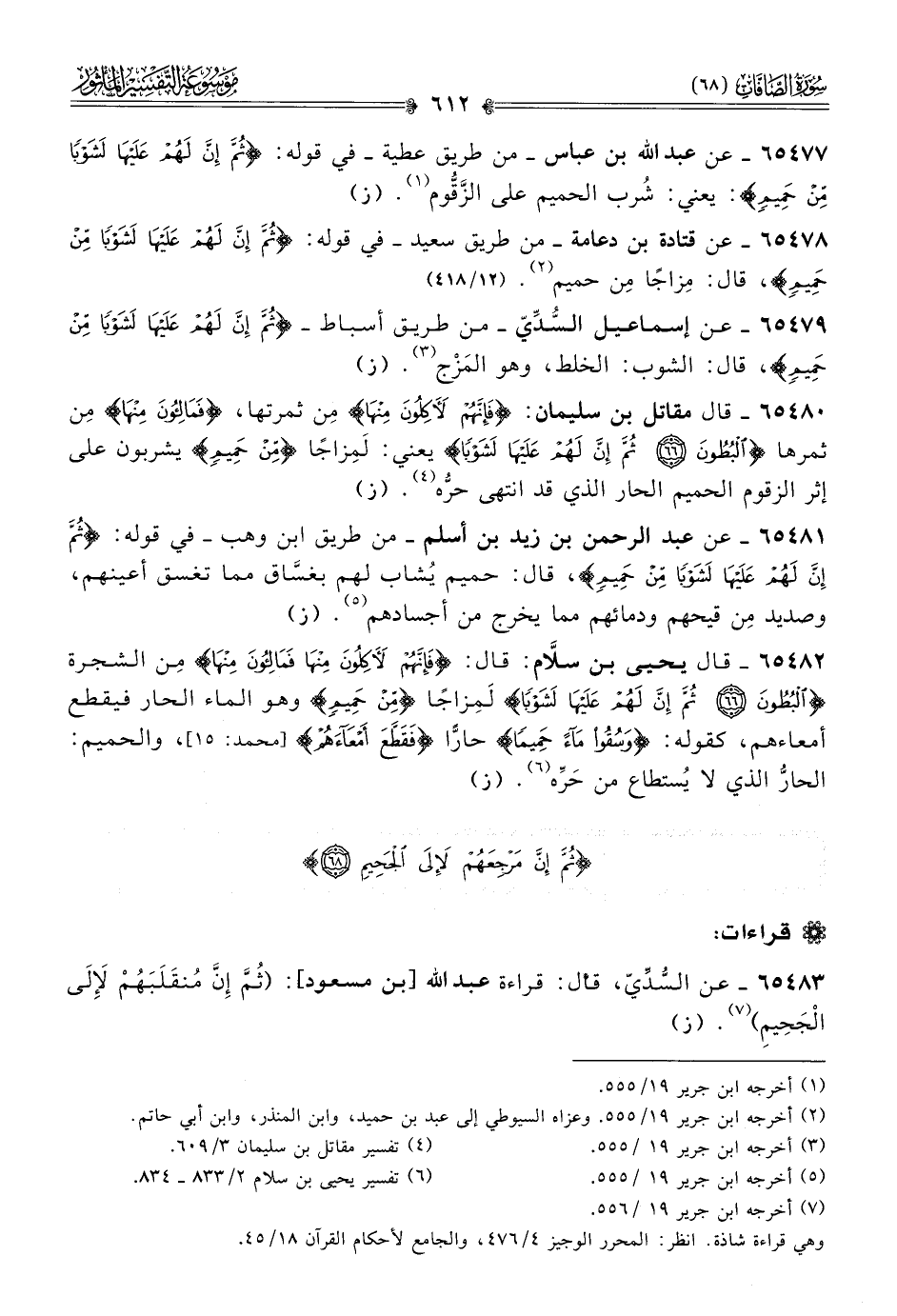 ٦٥٤٨٣ - عن السُّدِّيّ، قال: قراءة عبد الله [بن مسعود]: (ثُمَّ إنَّ مُنقَلَبَهُمْ لَإلى الجَحِيمِ) (¬٧). (ز)