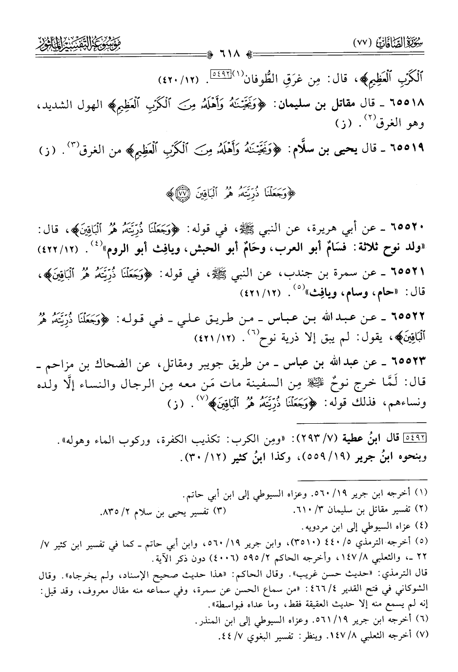 ٦٥٥٢٢ - عن عبد الله بن عباس -من طريق علي- في قوله: {وجَعَلْنا ذُرِّيَّتَهُ هُمُ الباقِينَ}، يقول: لم يبق إلا ذرية نوح (¬٦). (١٢/ ٤٢١)