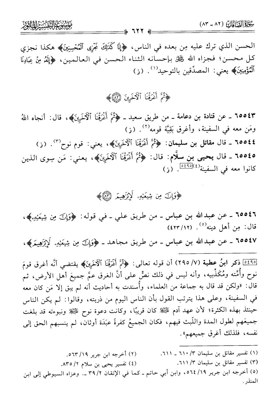 ٦٥٥٤٥ - قال يحيى بن سلّام: قال: {ثُمَّ أغْرَقْنا الآخَرِينَ}، يعني: مَن سِوى الذين كانوا معه في السفينة (¬٤) [٥٤٩٥]. (ز)