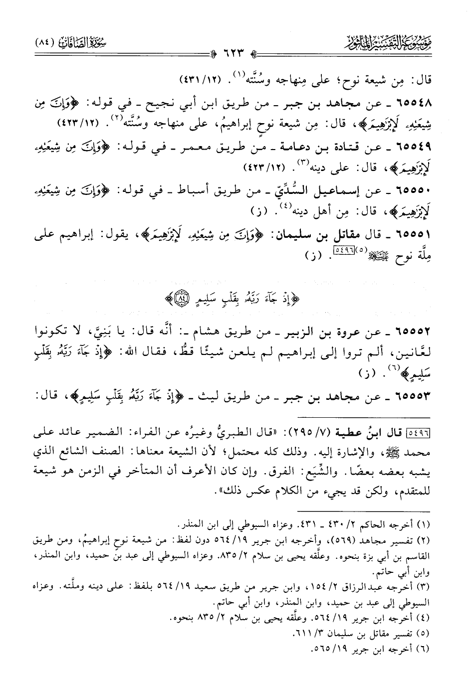 ٦٥٥٤٨ - عن مجاهد بن جبر -من طريق ابن أبي نجيح- في قوله: {وإنَّ مِن شِيعَتِهِ لَإبْراهِيمَ}، قال: مِن شيعة نوحٍ إبراهيمُ، على منهاجه وسُنَّته (¬٢).