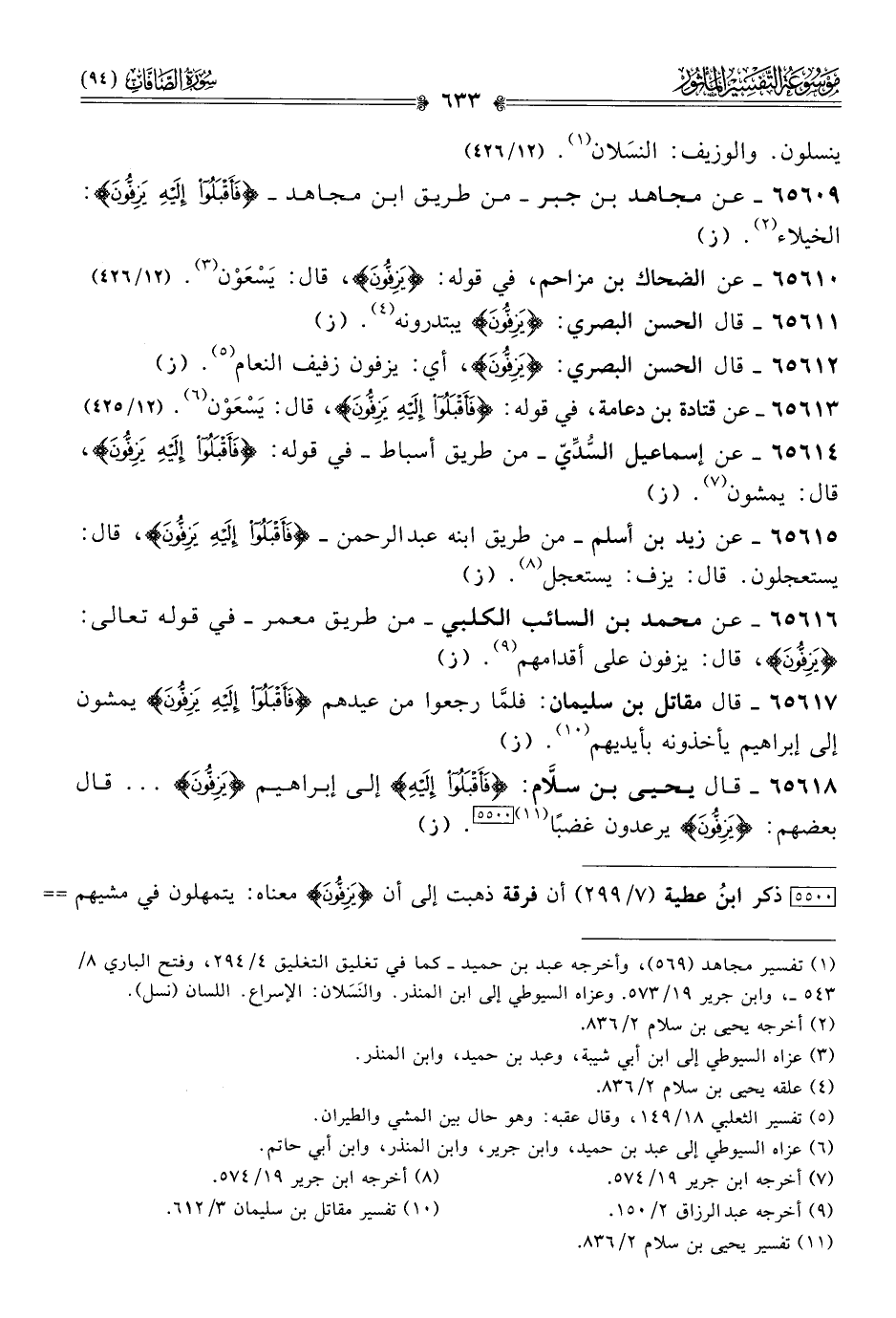 ٦٥٦١٢ - قال الحسن البصري: {يَزِفُّونَ}، أي: يزفون زفيف النعام (¬٥). (ز)