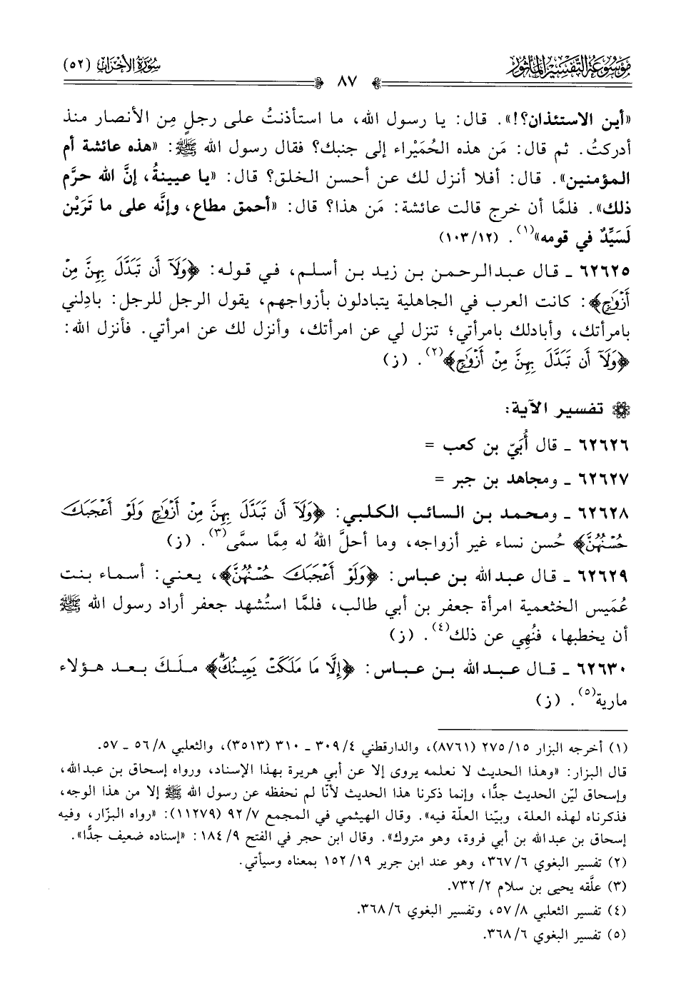 ٦٢٦٢٨ - ومحمد بن السائب الكلبي: {ولا أنْ تَبَدَّلَ بِهِنَّ مِن أزْواجٍ ولَوْ أعْجَبَكَ حُسْنُهُنَّ} حُسن نساء غير أزواجه، وما أحلَّ اللهُ له مِمّا سمّى (¬٣). (ز)