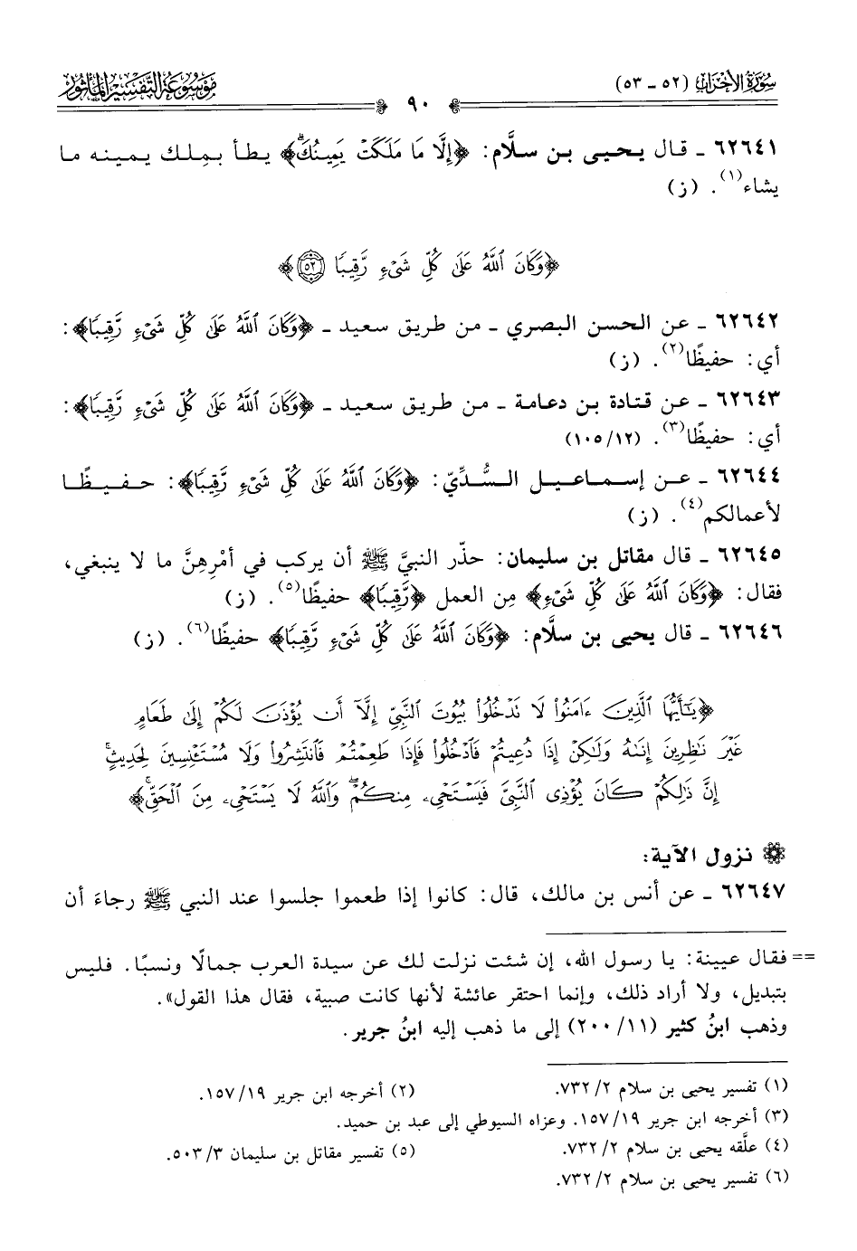 ٦٢٦٤٦ - قال يحيى بن سلّام: {وكانَ اللَّهُ عَلى كُلِّ شَيْءٍ رَقِيبًا} حفيظًا (¬٦). (ز)