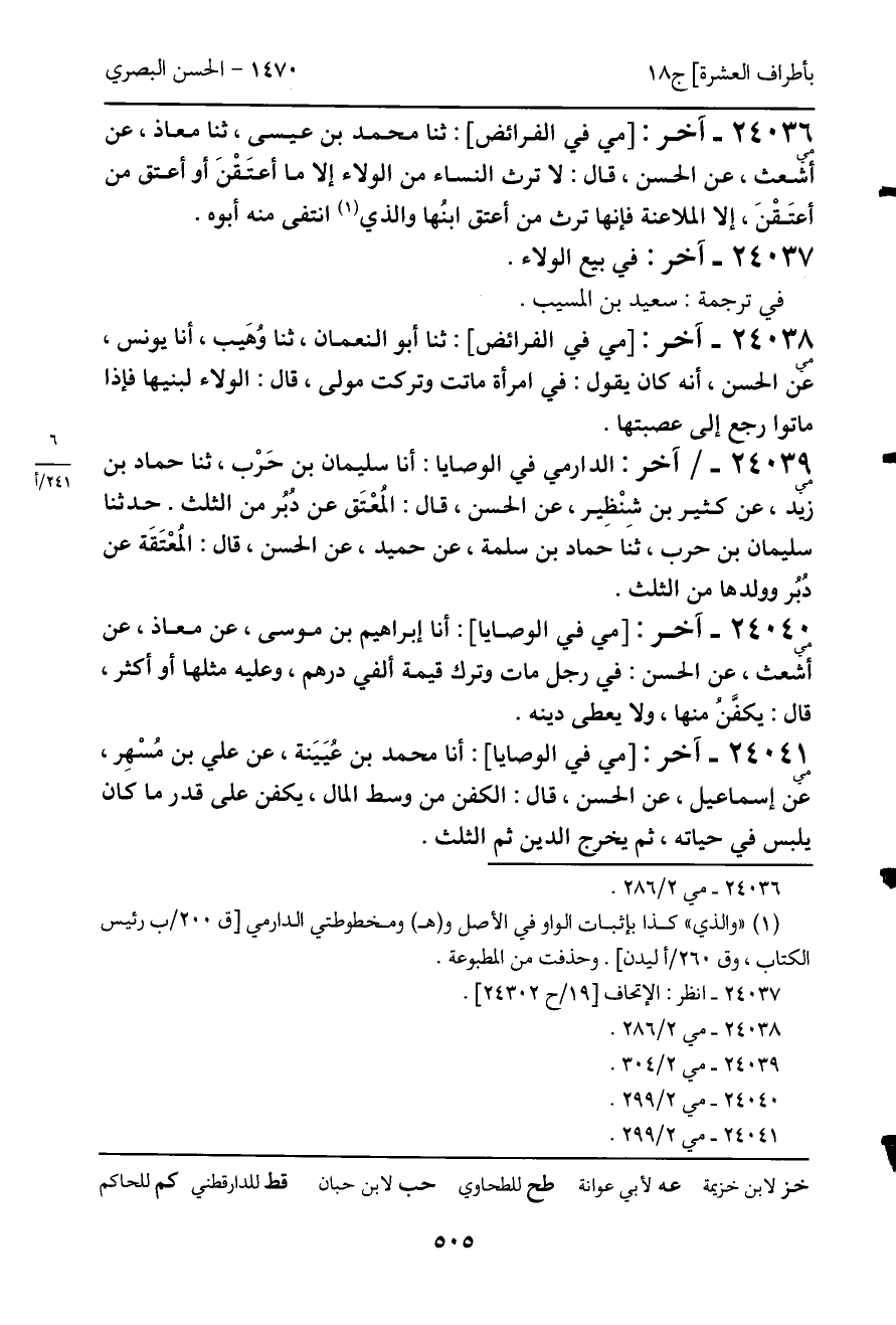 24038 - آخر (مي) : [مي في الفرائض] : ثنا أبو النعمان، ثنا وهَيب، أنا يونس، عن الحسن، أنه كان يقول: في امرأة ماتت وتركت مولى، قال: الولاء لبنيها فإذا ماتوا رجع إلى عصبتها.