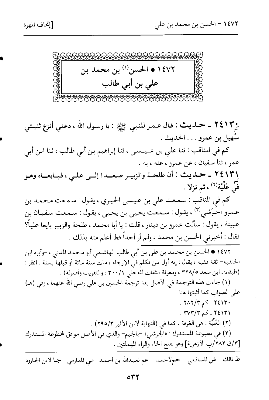 1472 ـ الحسن بن محمد بن علي بن أبي طالب