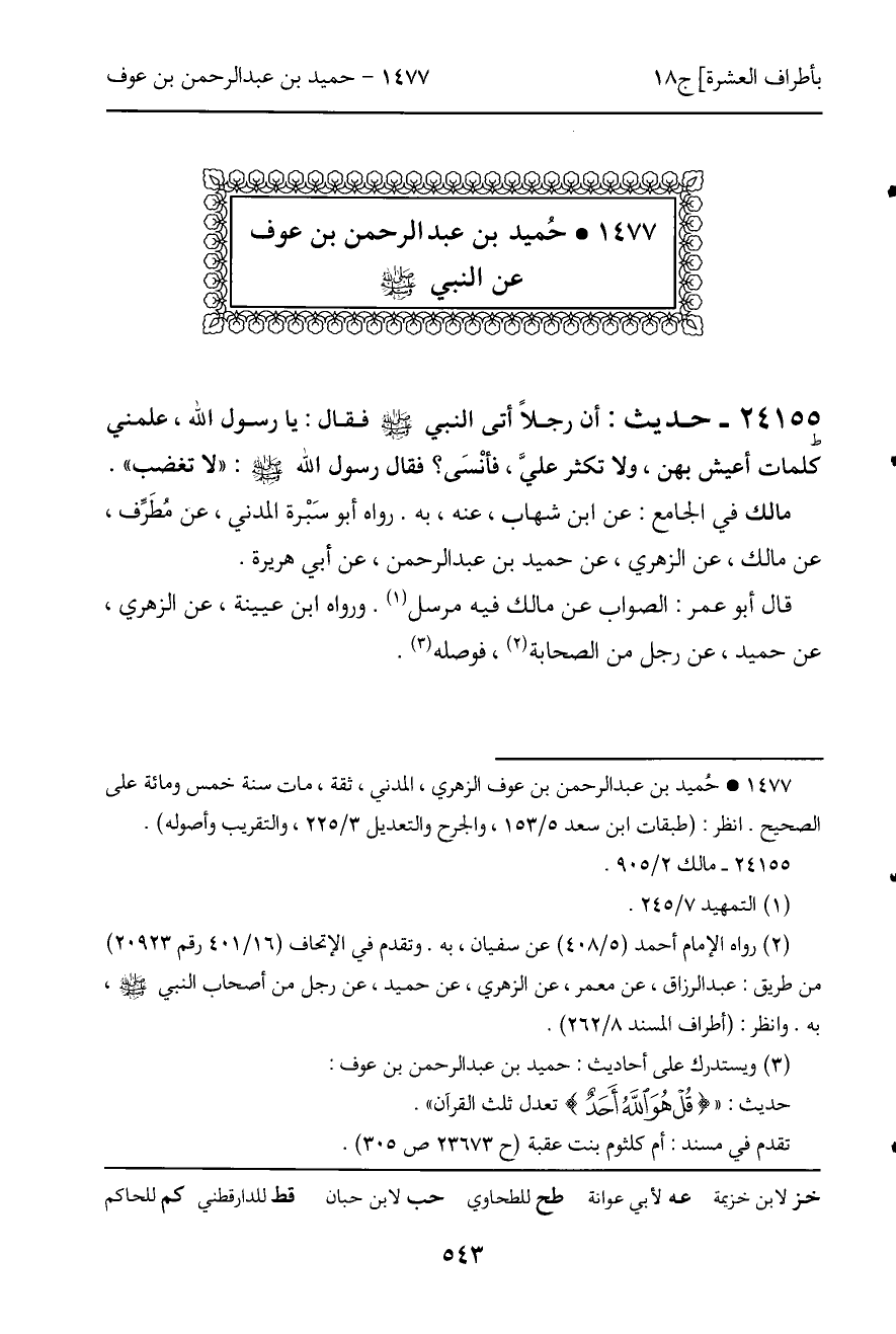 1477 ـ حُميد بن عبد الرحمن بن عوف عن النبي - صَلَّى اللَّهُ عَلَيْهِ وَسَلَّمَ -