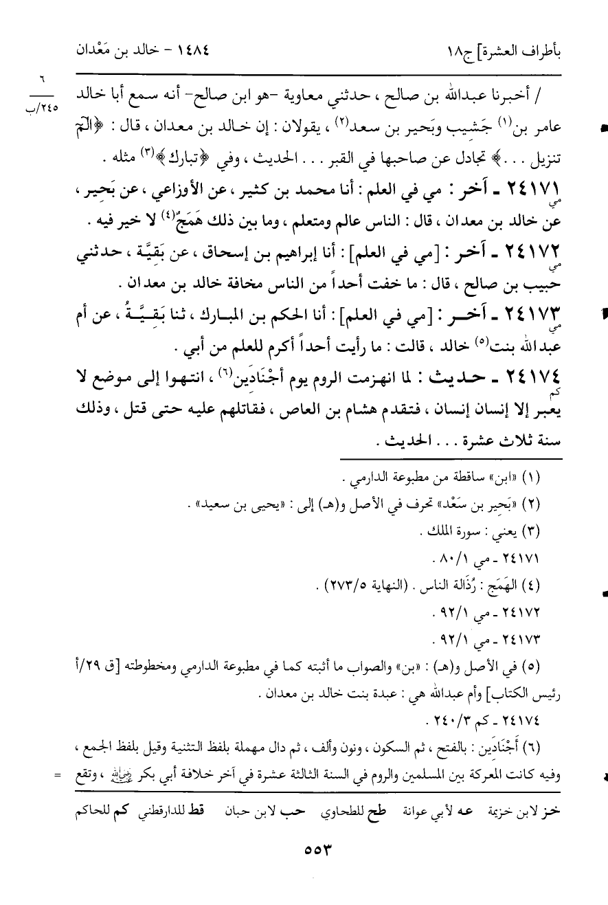 24171 - آخر (مي) : مي في العلم: أنا محمد بن كثير، عن الأوزاعي، عن بَحِير، عن خالد بن معدان، قال: الناس عالم ومتعلم، وما بين ذلك همج لا خير فيه.
