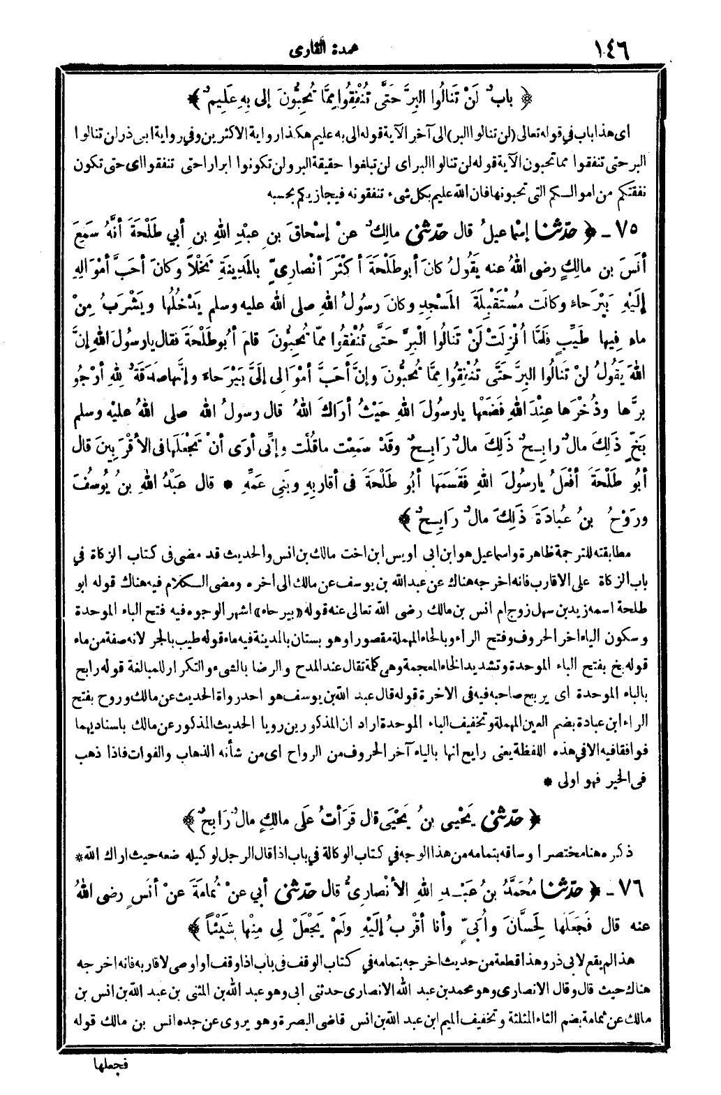 5 - (بابٌ: {لَنْ تَنَالُوا البِرَّ حَتَّى تُنْفِقُوا مِمَّا تُحِبُّونَ} إلَى {بِهِ عَلِيمٌ} (آل عمرَان: 92)
