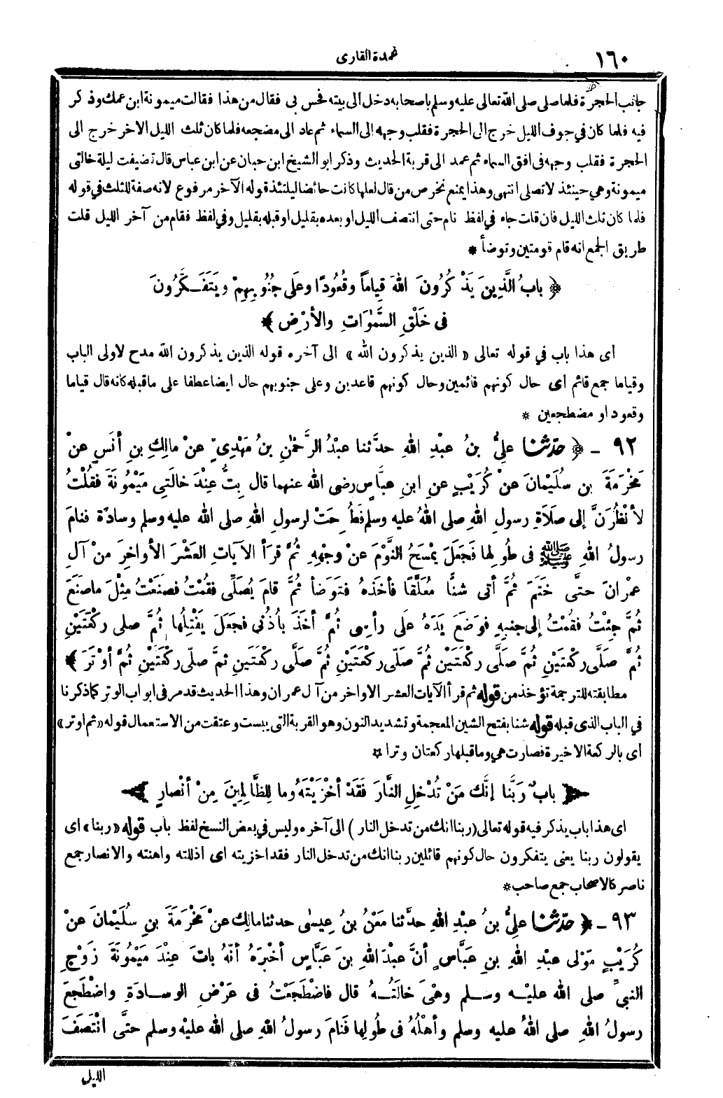 18 - (بَابُ: {الَّذِينَ يَذْكُرُونَ الله قِياما وَقُعُودا وَعَلَى جُنُوبِهِمْ وَيَتَفَكَّرُونَ فِي خَلْقِ السَّماواتِ وَالأَرْضِ} (آل عمرَان: 191)