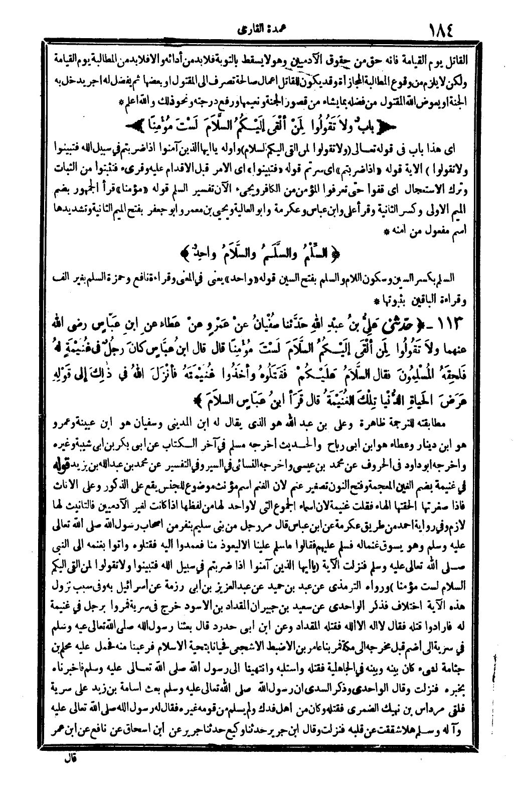 17 - (بابٌ: {وَلا تَقُولُوا لِمَنْ ألْقَى إلَيْكُمُ السَّلامَ لَسْتُ مُؤْمنا} (النِّسَاء: 94)