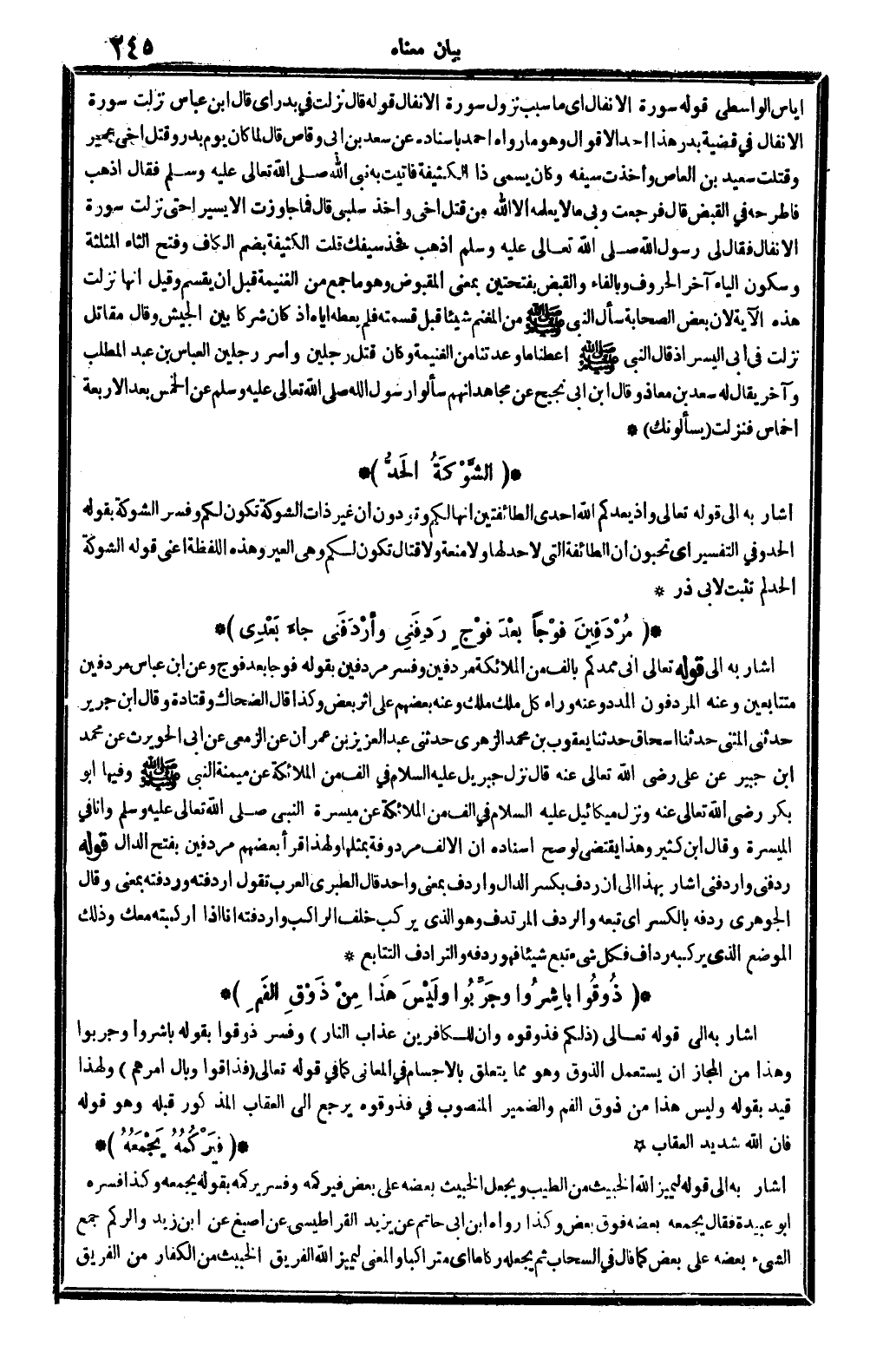 أَشَارَ بِهِ إِلَى قَوْله تَعَالَى: {وَإِذ يَعدكُم الله إِحْدَى الطَّائِفَتَيْنِ أَنَّهَا لكم وتودون أَن غير ذَات الشَّوْكَة تكون لكم} (الْأَنْفَال: 7) وَفسّر الشَّوْكَة بقوله: (الْحَد) وَفِي التَّفْسِير: أَي تحبون أَن الطَّائِفَة الَّتِي لَا حد لَهَا وَلَا مَنْعَة وَلَا قتال تكون لكم وَهِي العير، وَهَذِه اللَّفْظَة أَعنِي قَوْله: (الشَّوْكَة الْحَد) لم تثبت لأبي ذَر.