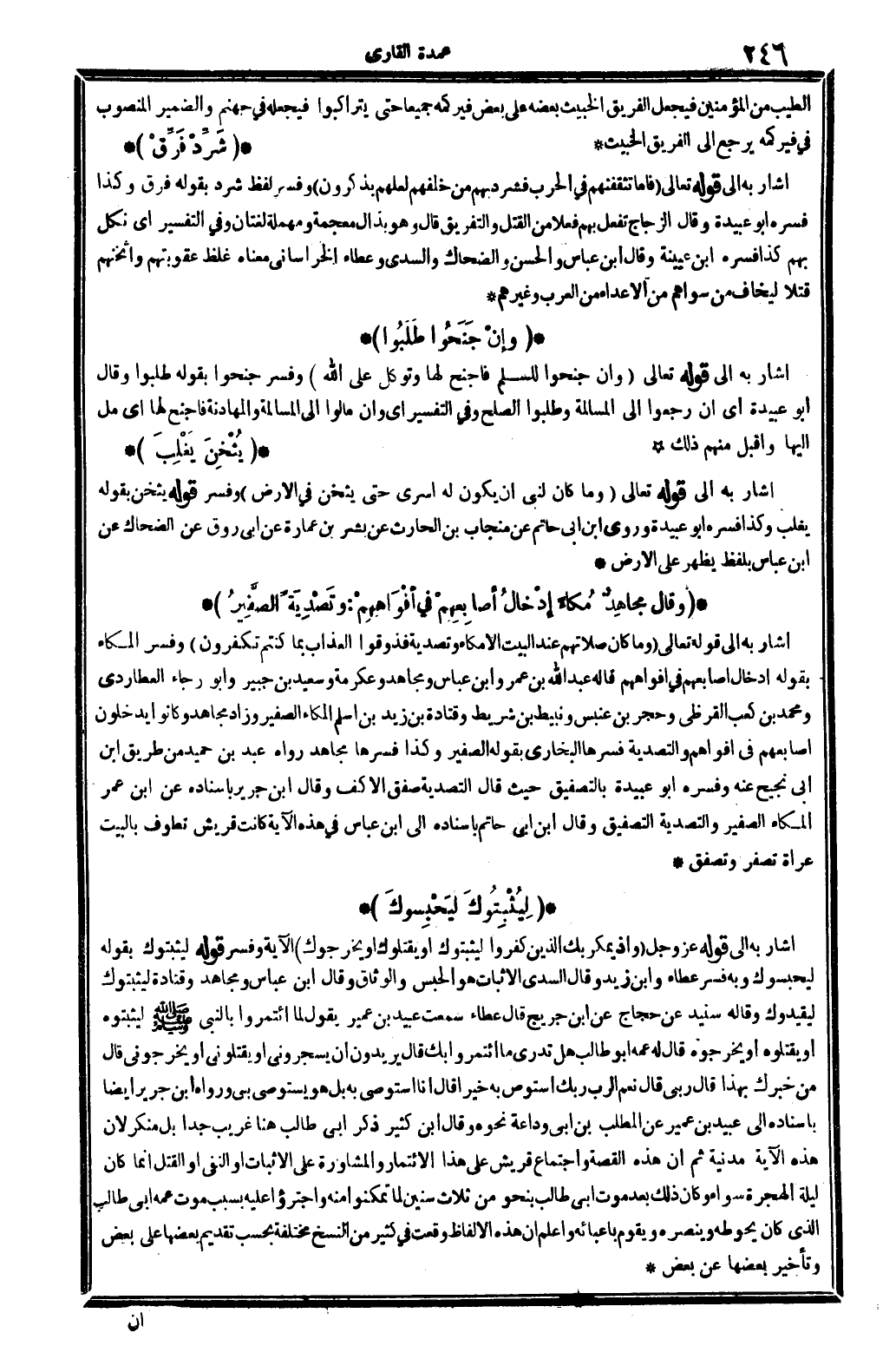أَشَارَ بِهِ إِلَى قَوْله تَعَالَى: {وَإِن جنحوا للسلم فاجنح لهاوتوكل على الله} (الْأَنْفَال: 61) وَفسّر: جنحوا، بقوله: طلبُوا، وَقَالَ أَبُو عُبَيْدَة: أَي إِن رجعُوا إِلَى المسالمة وطلبوا الصُّلْح، وَفِي التَّفْسِير: أَي وَإِن مالوا إِلَى المسالمة والمهادنة فاجنح لَهَا أَي، مل إِلَيْهَا وَاقْبَلْ مِنْهُم ذَلِك.